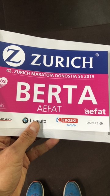 Fui a por el dorsal y la organización del Maratón tuvo el detalle de darme un dorsal con el nombre de Berta, se me pusieron los pelos de punta, que pasada ver un dorsal con su nombre , es algo que me encanta . Porque para eso estamos allí, para que la gente conozca a Berta, lo que le pasa, lo que esta superando , su enfermedad, el síndrome de rett .Es lo que sabemos hacer , DIFUNDIR .