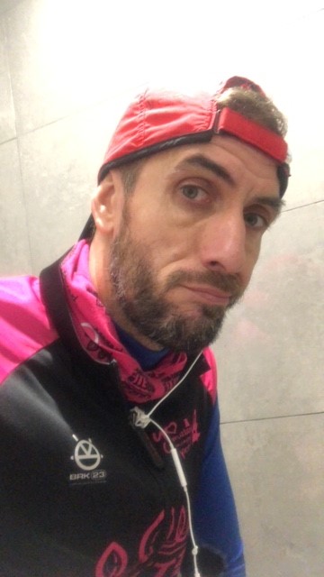En el km 35 con las piernas muy cargadas y un ritmo bajo noto que el estómago me pide una parada , es decir, lo que viene a ser un apretón .... Veo un bar y al baño... entro tan rápido que el camarero se da cuenta de lo que pasa y no dice nada ... salgo esperando que sólo haya sido un susto ... sigo corriendo y en el 37 vuelvo a tener otro apretón... da la casualidad que paso por mi hotel , y entro a usar el servicio, la cara de la recepcionista viéndome pasar a toda prisa fue graciosa .