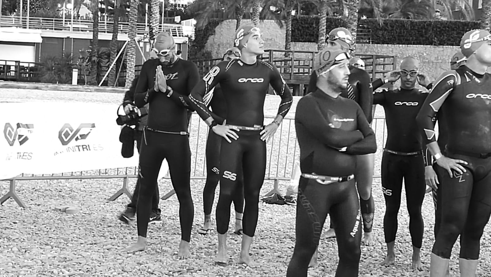 Vamos a la playa , el mar está bien aunque más olas que el año pasado. Son 5 vueltas de 2 Km y la idea es ir con mucha calma y que pasen los km . Me pongo el neopreno y siento que va a ser un gran día, no sé como explicarlo , me encuentro contento , descansado y preparado mentalmente . Es lo mas duro de la natación, estar 3 horas o más comiéndote la cabeza, pensando en tus historias . Voy pasando vueltas y voy demasiado rápido pero demasiado bien... así que sigo y sigo ... Meyer tiene cara de incrédula porque se suponía que iría despacio y voy tercero ... En la 4ª vuelta, km 8 , salgo muy mareado pero sé que es normal por el oleaje. Ahí me meto en el agua y los hombros me molestan mucho , pero son "sólo" 2 km de dolor, así voy parando y aguantando . Salgo del agua con mi mejor marca 3:13 .