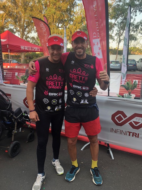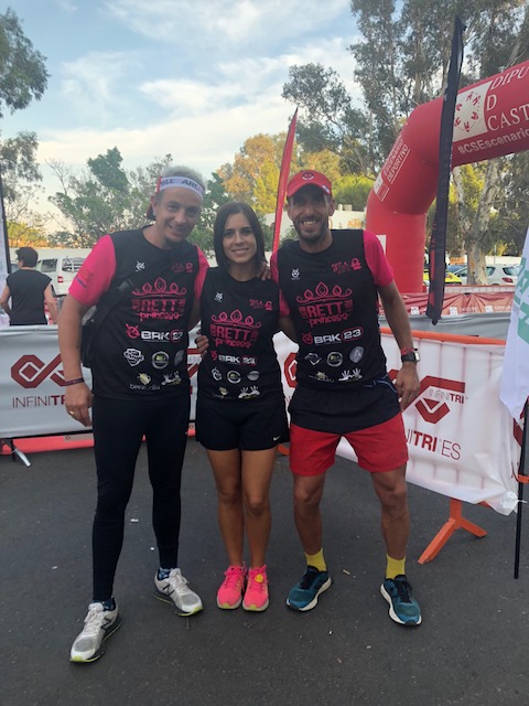 Me cambio de ropa y la equipación de BRK23 por LUCHARETT POR TI PRINCESA , es alucinante, la estreno en esta carrera y me encanta . Salgo con la bici y van pasando los km , salgo rápido , voy pensando en mis cosas y sin darme cuenta estoy ya en el trozo de subidas y bajadas . Meyer va siguiéndome sin perderse , va dándome coca cola y isotónico y mis bollitos de leche , pasamos los puertos y cojo a Dani y me quedo 60 km con él que ME DAN LA VIDA , nos ponemos a contarnos batallitas y acabamos la etapa sin sufrir mentalmente . Cómo se pueden pasar 9 horas tan rápido??? Etapa 1 acabada y superada . Gracias DANI!