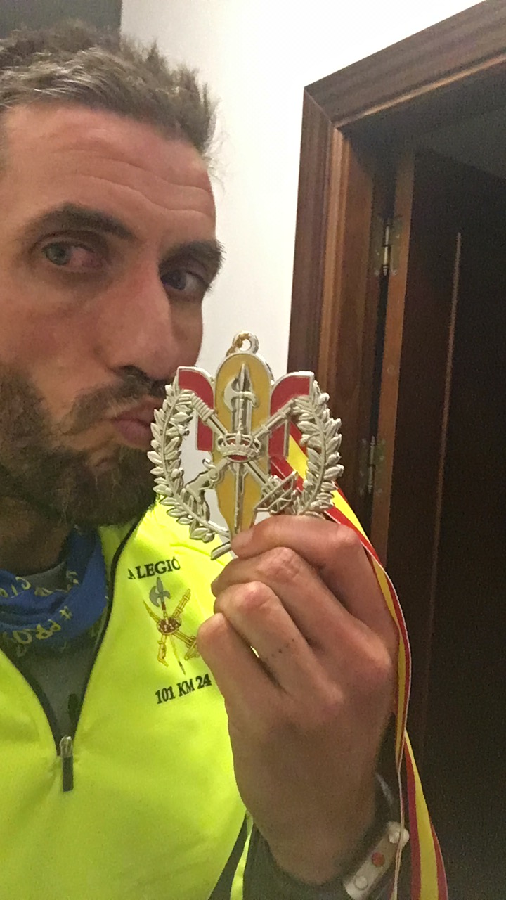 Y una mierda!!! En esos 17 km había unas cuestas y unas subidas que me dejaron molido mentalmente , porque no me las esperaba... y porque solo pensaba en llegar ... así que fuí fuerte y no pensé y solo me deciía , lo tienes , lo tienes , lo tienes ... y llego a los 4 últimos km , me siento en el último avituallamiento ya a punto de llorar y un legionario me dice , ahora que lo tienes no te rendirás no? CóMO? Rendirme?? Nuncaaaaaa . Así que cogí la cuesta y para arriba ... y ahí me fui dejando las pocas fuerzas que me quedaban ... y ahí empecé a llorar como un niño chico y ahí me dí cuenta que iba a terminarlo, y ahí me di cuenta que volvía a ser Invencible .