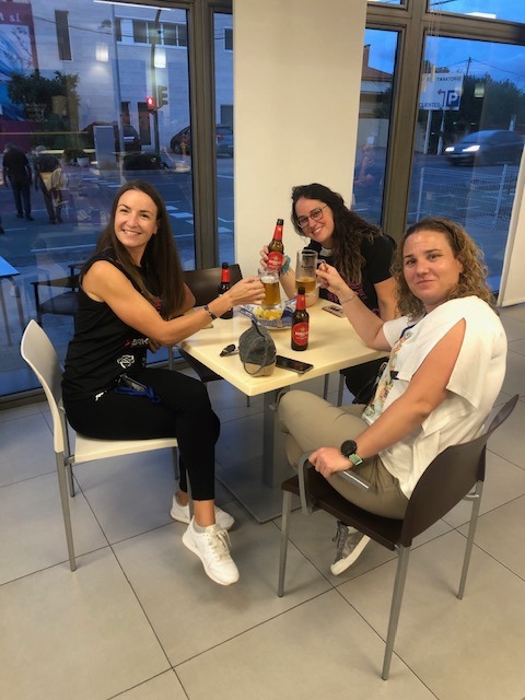 Después todo son abrazos, risas, felicidad, el equipo se da a las cervezas , los participantes nos contamos nuestras batallitas mientras esperamos a los que faltan . Todo es energía positiva, Marta y Eric me dan power .